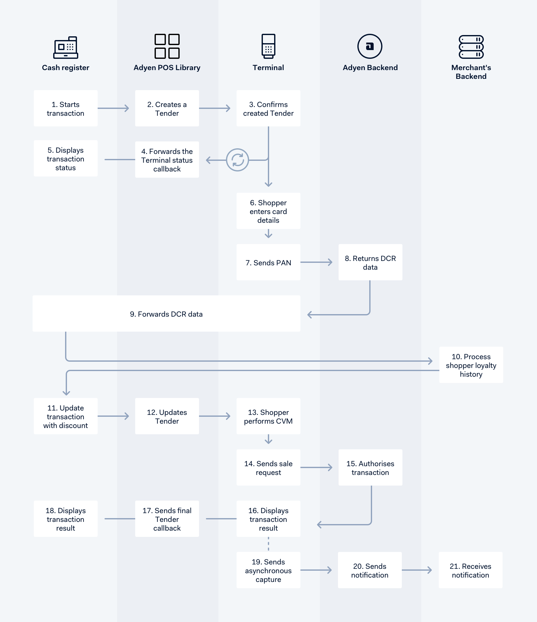 The POS library sends the final result callback to the cash register. The result can be: Approved, Declined, Cancelled or Error.