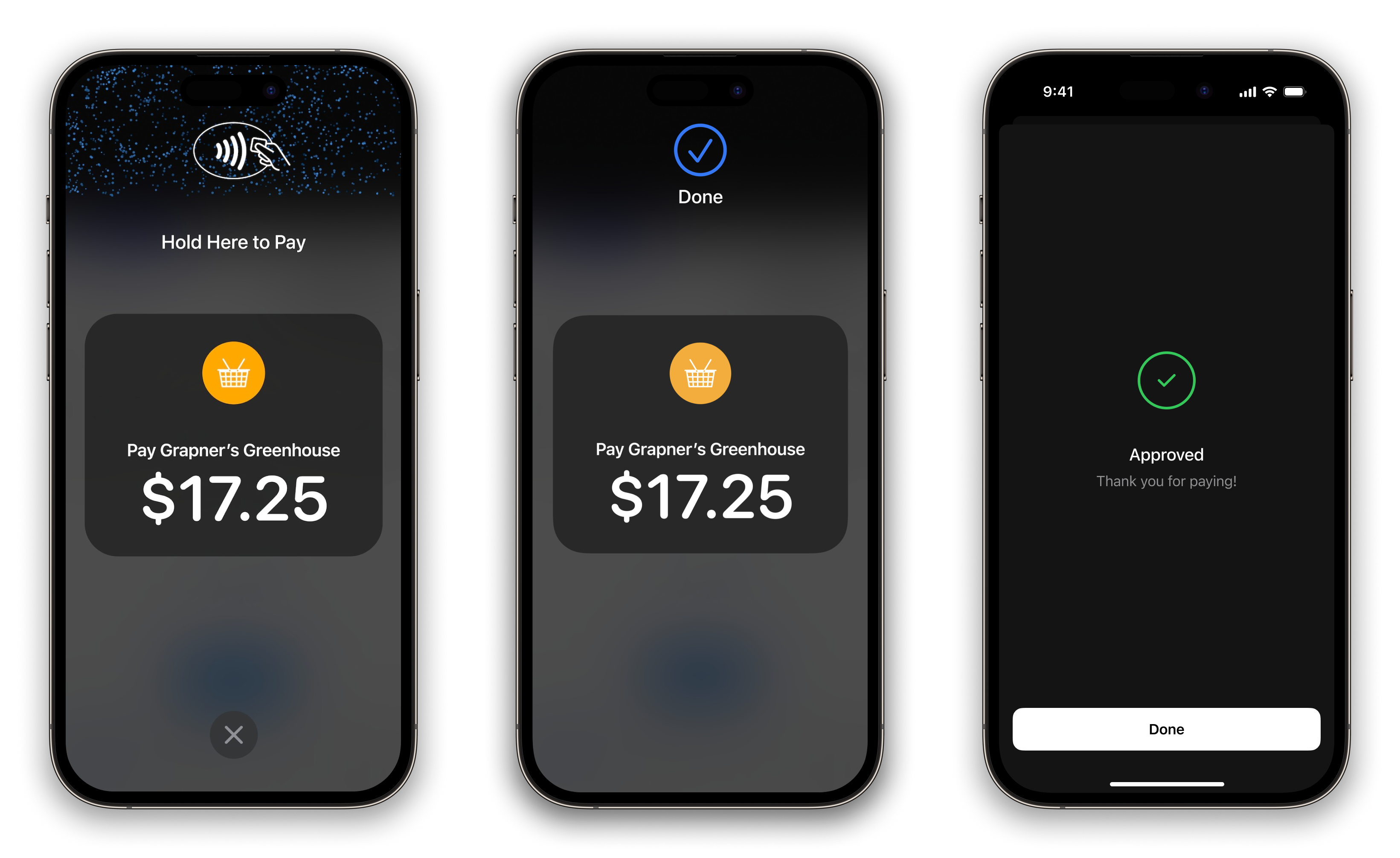 After reading a card, the iPhone automatically shows a Done screen first. This does not mean that the transaction is authorized yet. Only when the transaction is authorized and an Approved screen with a green check mark automatically appears, can you move on to the next step in the flow, which would be to get the receipt.