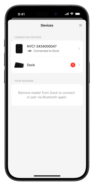 In addition to Bluetooth, card readers can be connected through USB. The user's mobile device is connected to a dock using a USB-C cable, and the card reader is placed in the dock. The SDK recognizes the situation, and presents built-in UI screens to inform the reader about the USB connection.