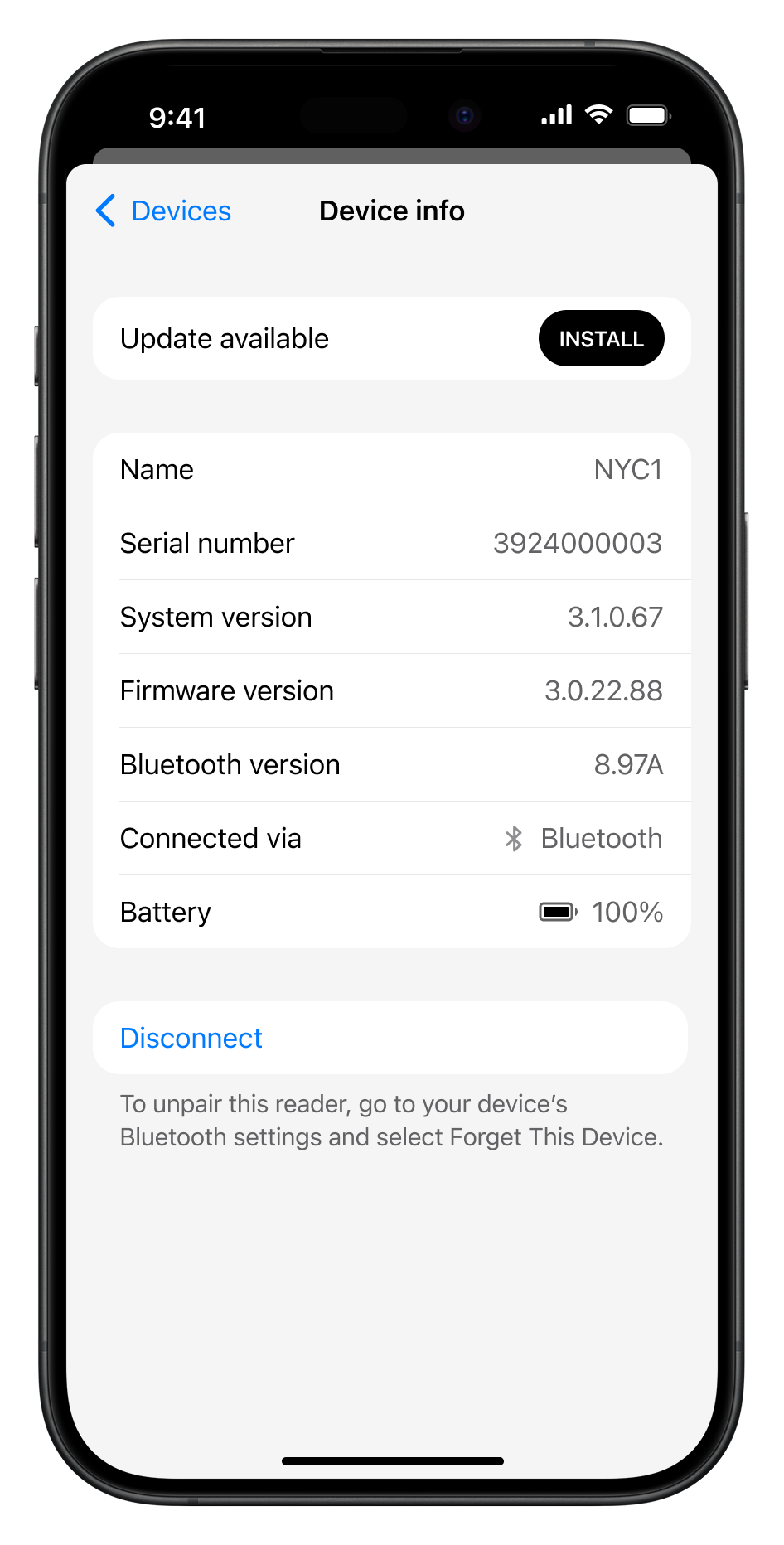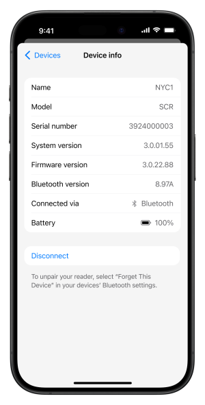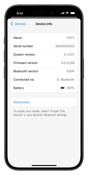- View details of the card reader they are using. For example, to check the battery charge level.