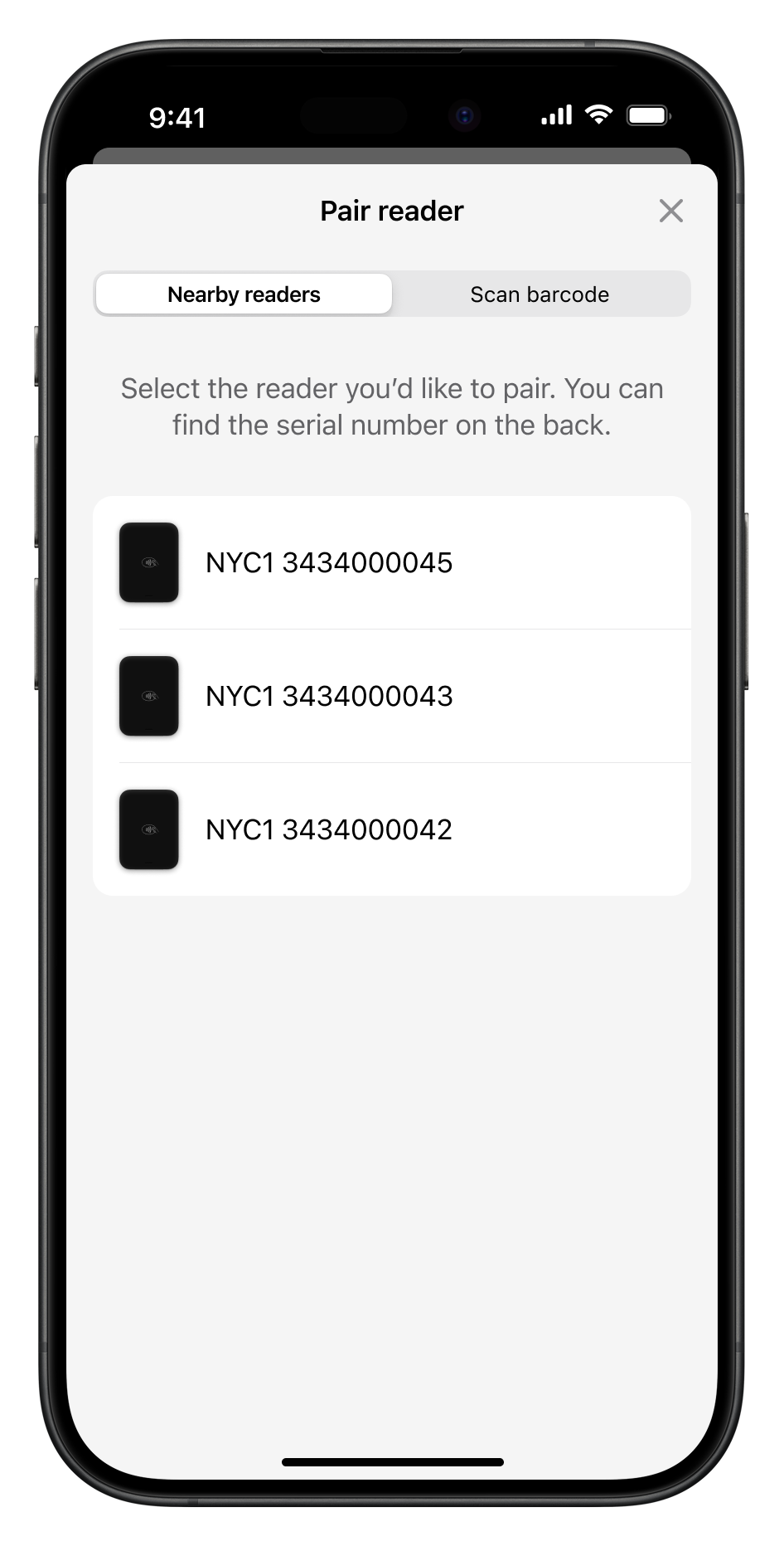 The built-in UI screens guide the reader through the process of connecting their mobile device to a card reader through Bluetooth.