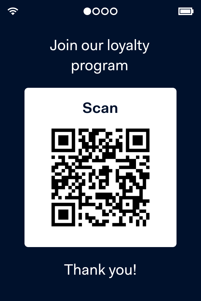 - Show a QR code that the shopper can scan with their mobile device. For example, a QR code with the URL to join your loyalty program or to download an app.