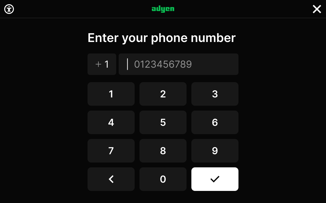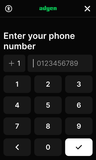 Here we describe how you can use an input request to ask the shopper to enter their phone number. The country code is prefilled based on the location of the terminal, but can be changed on the terminal.