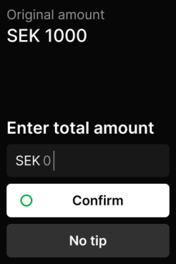 - Ask for a total amount: if the customer wants to give a tip, they enter a total amount that is higher than the original purchase amount. This is customary in Nordic countries/regions.