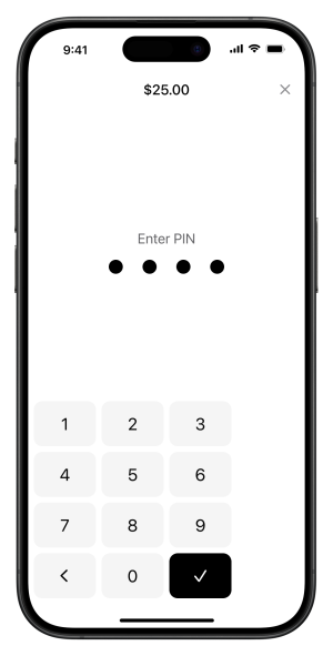 If your reader supports PIN transactions, the customer can enter their PIN on your mobile device. -