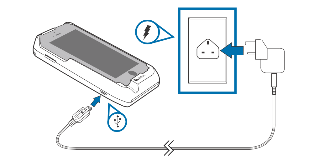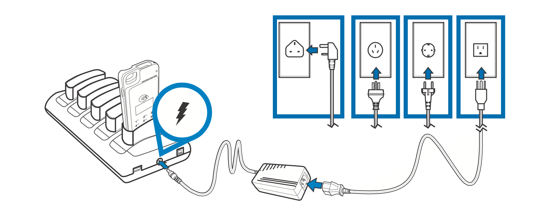 - Plug the VeriFone-certified wall-mount charger into a wall outlet or powered surge protector