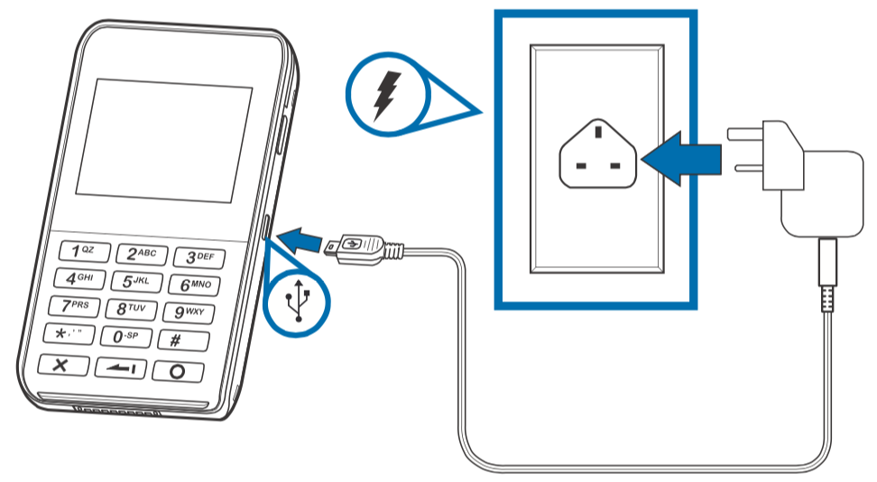 Home In-person payments ... e355 user manual Charging the e355 Charge the e355 Charge your terminal before use with the provided Micro-USB cable. Steps Plug the charger into a wall outlet or powered surge protector. Insert the Micro-USB cable into the port located on the side of the e355.