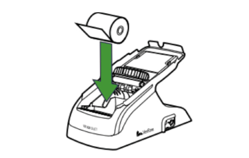 - Press the paper roll into the printer tray.