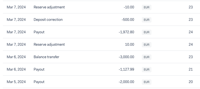 By transferring balances, you can adjust the balance of your reserve, your deposit, or pending amount. You can do this by using the Customer Area or the Balance Control API.