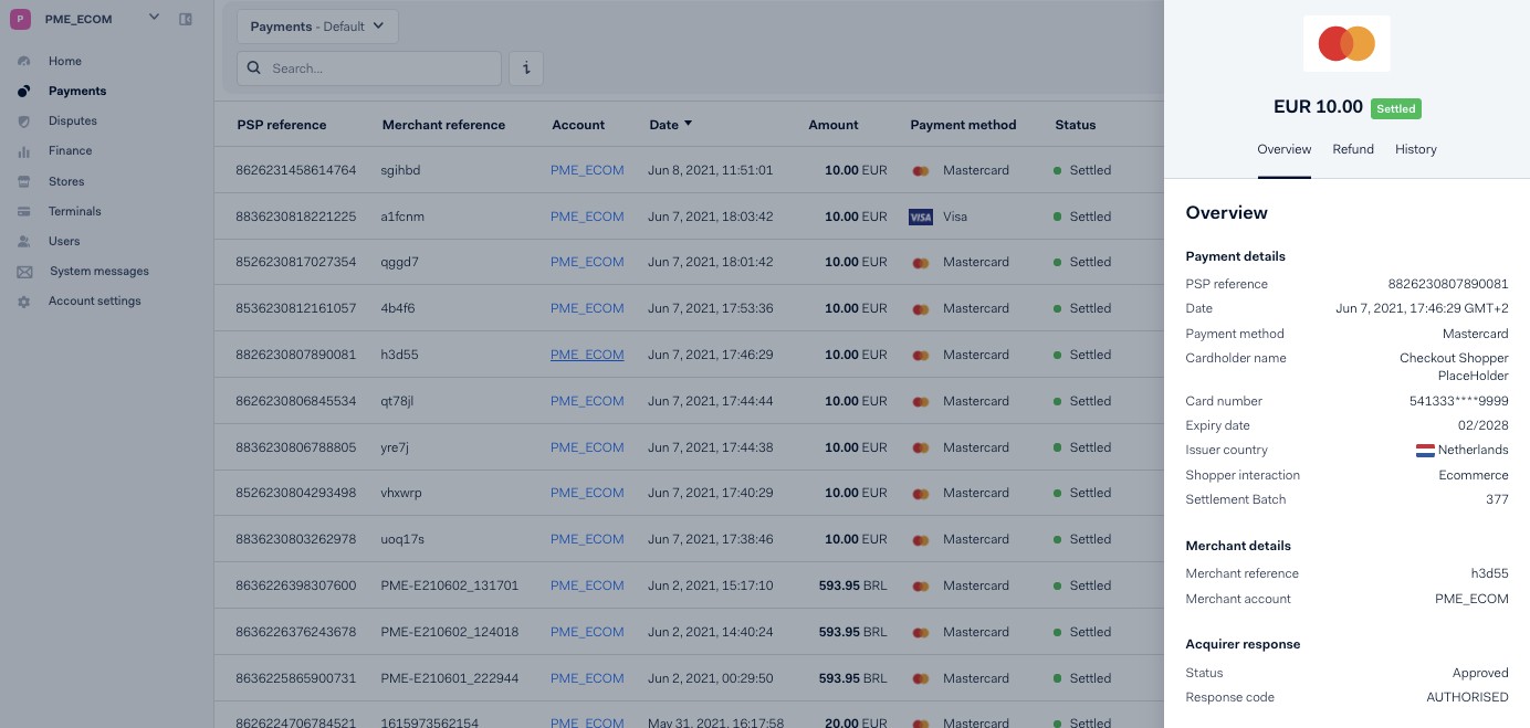 • PSP reference: this is Adyen's unique 16-character reference for this payment.
