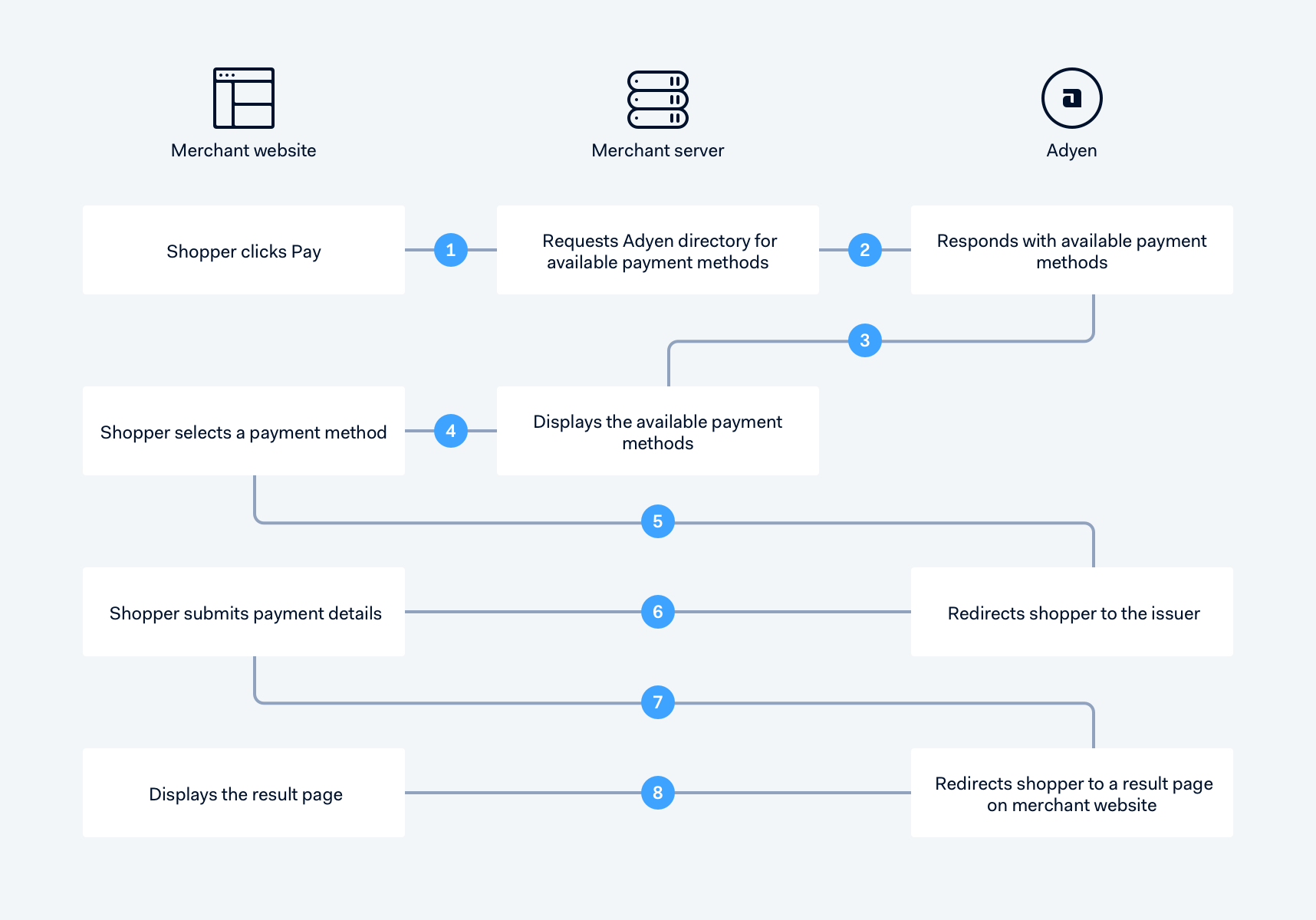 The flow of a payment using a local payment method is illustrated in the diagram below: