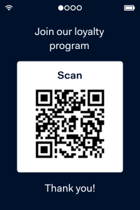 - Mostre um QR code para que o cliente possa digitalizar com seu dispositivo móvel. Por exemplo, um QR code com o URL para ingressar no seu programa de fidelidade ou para baixar um aplicativo.