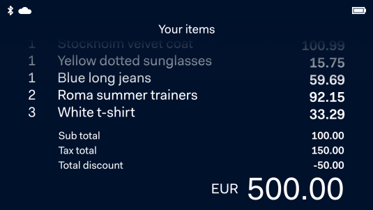 - Em um terminal com uma tela ampla, permita que o cliente visualize um recibo virtual dos itens que está comprando. Você também pode mostrar um QR code ao lado das linhas de recibo.
