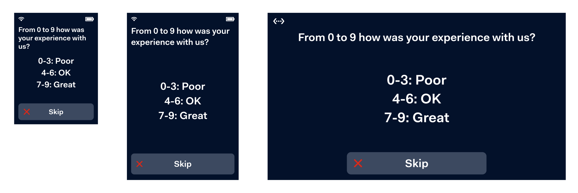 For an example input request, see Ask for a rating. That shows a screen that on various display sizes could look as follows: