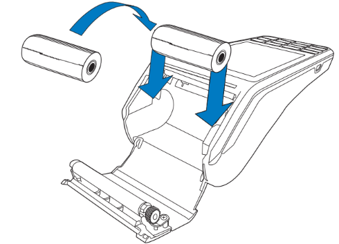 - Hold the roll so that the paper feeds from the bottom of the roll when the terminal is inverted.