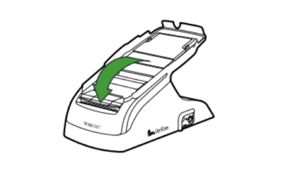 - Close the paper roll cover by gently pressing on the cover until it clicks. Allow a small amount of paper past the glue residue to extend outside of the printer cover.